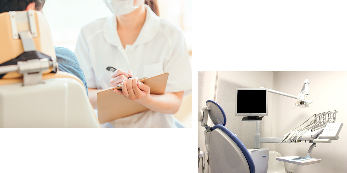 虫歯や知覚過敏、歯周病、口内炎など、よくありがちなお口のトラブルについての対処を行います。 急なお痛みや異変にはなるべく早めに対処いたしますので、お気軽にご相談ください。