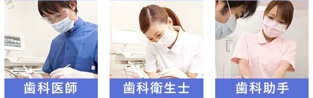 日々の診療では歯科医師、歯科衛生士、歯科助手、受付スタッフ、歯科技工士が各自プロとしての意識を持ち、それぞれの役目を責任を持って果たし、患者様の歯の健康を全力でサポートしてまいります。